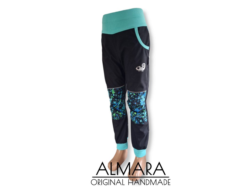 V ceně kalhot: kapsy (od velikosti 98*), prošívaná kolena, dělený ozdobný sed, reflexní paspulky a nažehlovačka.